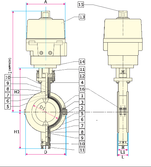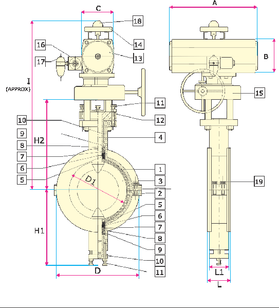 Valvola a farfalla rivestita azionamento pneumatico Sezione Valvola a farfalla rivestita azionamento pneumatico Materiali Valvola a farfalla rivestita azionamento pneumatico Dimensioni Valvola a farfalla rivestita azionamento pneumatico