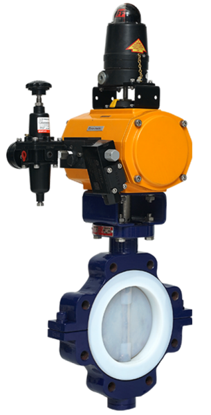 Banner Valvola di controllo a farfalla rivestita con azionamento pneumatico o elettrico